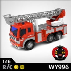Пожарная машина Firefighting имеет реалистичный и детально проработанный дизайн в красных, белых и серых тонах, повторяющий машину-прототип в точности в масштабе 1 к 16. Ездит она на радиоуправлении и управляется с помощью пульта. Машина может ехать во всех направлениях движения, при этом фары будут подсвечиваться. Пожарная стрела может двигаться. Пульт прост и удобен в использовании.